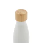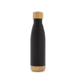 Botella térmica de doble pared de acero inoxidable y tapa de bambú con capacidad de 500 ml. Mantiene las bebidas frías por 24 horas y calientes durante 12 horas. Ideal para deporte o uso diario.