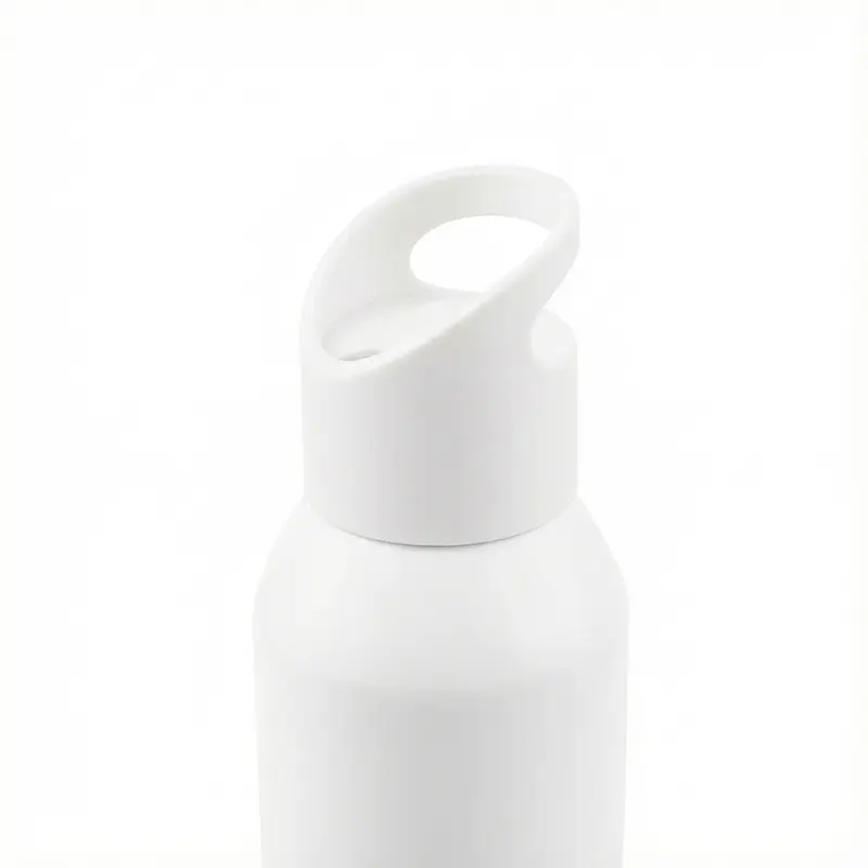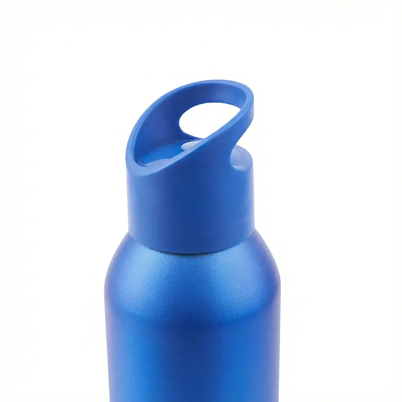 Sport Bottle reutilizable de aluminio con tapa rosca de PP y silicona. Cuenta con una tapa con agarre para facilitar su transporte.