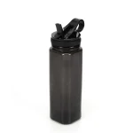 Botella de PP con boquilla vertedora deportiva. Cuenta con un agarre en la tapa. Medida: 23,7 cm x 6,2 cm. Capacidad: 650 ml.