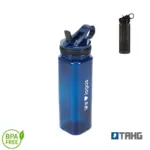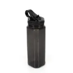 Botella de PP con boquilla vertedora deportiva. Cuenta con un agarre en la tapa. Medida: 23,7 cm x 6,2 cm. Capacidad: 650 ml.