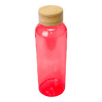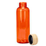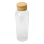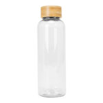 Botella plástica PET color translúcido, con tapa redonda twist-off de Bamboo, modelo «AINOA». Producto BPA FREE, para el contacto con líquidos y alimentos. Capacidad 550ml. Presentación en bolsa OPP + caja de regalo de cartón kraft.