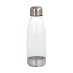 Botella plástica de Acrilonitrilo Estireno (AS) color translúcido, con fondo y tapa de Acero inoxidable, modelo «AS». Producto BPA FREE, para el contacto con líquidos y alimentos. Capacidad 500ml. Presentación en bolsa OPP + caja de regalo de cartón negro.