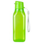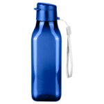 Botella Plástica PP deportiva de 430ml. modelo «UMBRIA». Sólo para líquidos fríos. Contiene tapa plástica de fácil apertura con boquilla ancha para beber. Incluye lanyard para colgar. Producto libre de BPA. Presentación en caja de cartón negro y bolsa de polipropileno transparente.