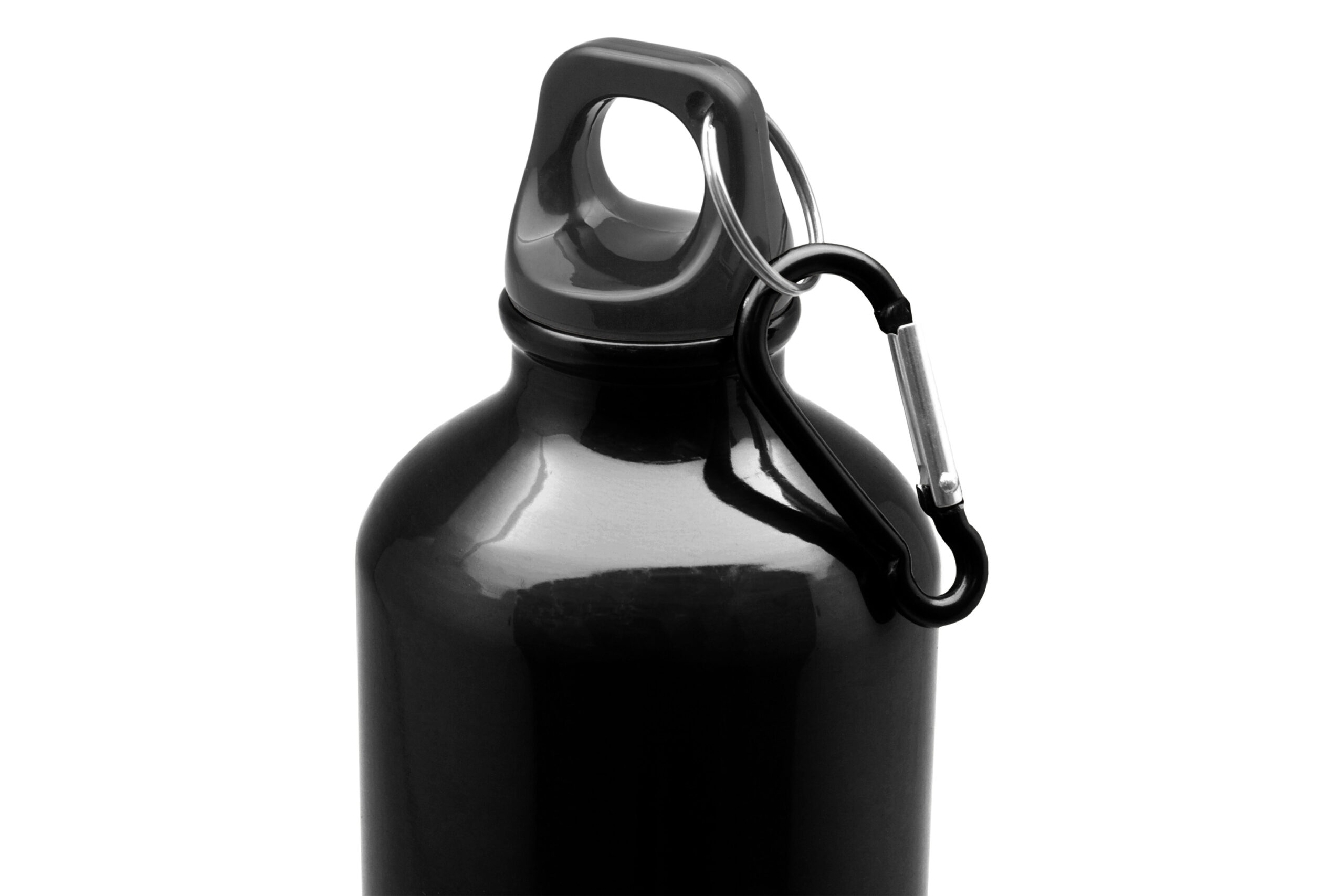 Ø 7,2 x 25,5 cm. Capacidad 750 ml. Aluminio. Botella de aluminio. Tapa a rosca plástica y gancho metálico.