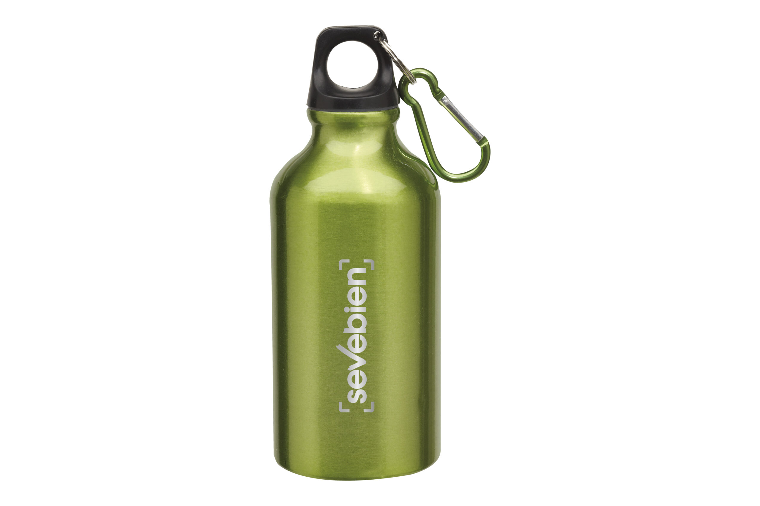 Ø 6,5 x 17,5 cm. Capacidad 400 ml. Aluminio. Botella de aluminio con cierre de plástico y carabina metálica.