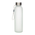 Durabilidad y diseño en un solo envase.Botella de vidrio con acabado frost sublimable. Tapa de acero inoxidable, anillo de silicona antiderrame y correa reforzada. Medidas: Ø 6,2 x 22 cm.