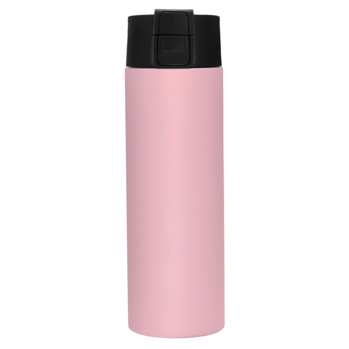 Ø 7 cm x 23 cm. Acero inoxidable. Capacidad 450 ml. Botella doble pared, sellada al vacío. Interior de acero 304 y exterior de acero 201. Pintura acabado mate. Tapa en PP con traba de seguridad y botón pulsador de apertura. Mantiene por más de 12 hs la temperatura de las bebidas calientes y 24 hs de las bebidas frías. Presentación en caja de regalo kraft.
