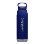 Ø 7,6 x 26,5 cm. Capacidad 600 ml. Acero inoxidable. Botella doble pared, sellada al vacío. Interior en acero 304 y exterior en acero 201. Pintura en colores mate. Tapa combinada en plástico del mismo color de la botella y acero inoxidable 201. Mantiene hasta 12 hs la temperatura de las bebidas calientes y 24 hs de las bebidas frías. Presentación en caja de regalo.