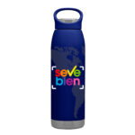 Ø 7,6 x 26,5 cm. Capacidad 600 ml. Acero inoxidable. Botella doble pared, sellada al vacío. Botella con aislamiento térmico. Tecnología vacuum.Interior en acero 304 y exterior en acero 201. Pintura en colores mate. Tapa combinada en plástico del mismo color de la botella y acero inoxidable 201. Mantiene hasta 12 hs la temperatura de las bebidas calientes y 24 hs de las bebidas frías. Presentación en caja de regalo.