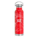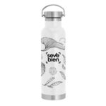 Ø 7,3 x 26 cm. Capacidad 650 ml. Acero inoxidable. Botella doble pared, sellada al vacío. Interior en acero 304 y exterior en acero 201. Tapa de acero a rosca con manija rebatible metálica . La medida de este termo es tan practica que con el tendras el liquido necesario para estar hidratado en el momento del día que elijas. Mantiene hasta 12 hs la temperatura de las bebidas calientes y 24 hs de las bebidas frías. Presentación en caja de regalo.