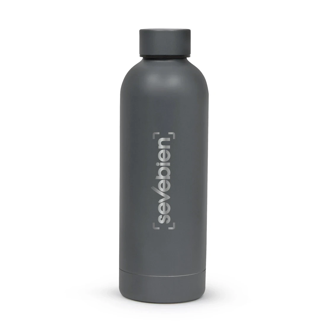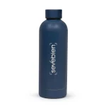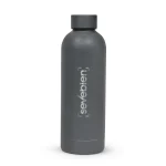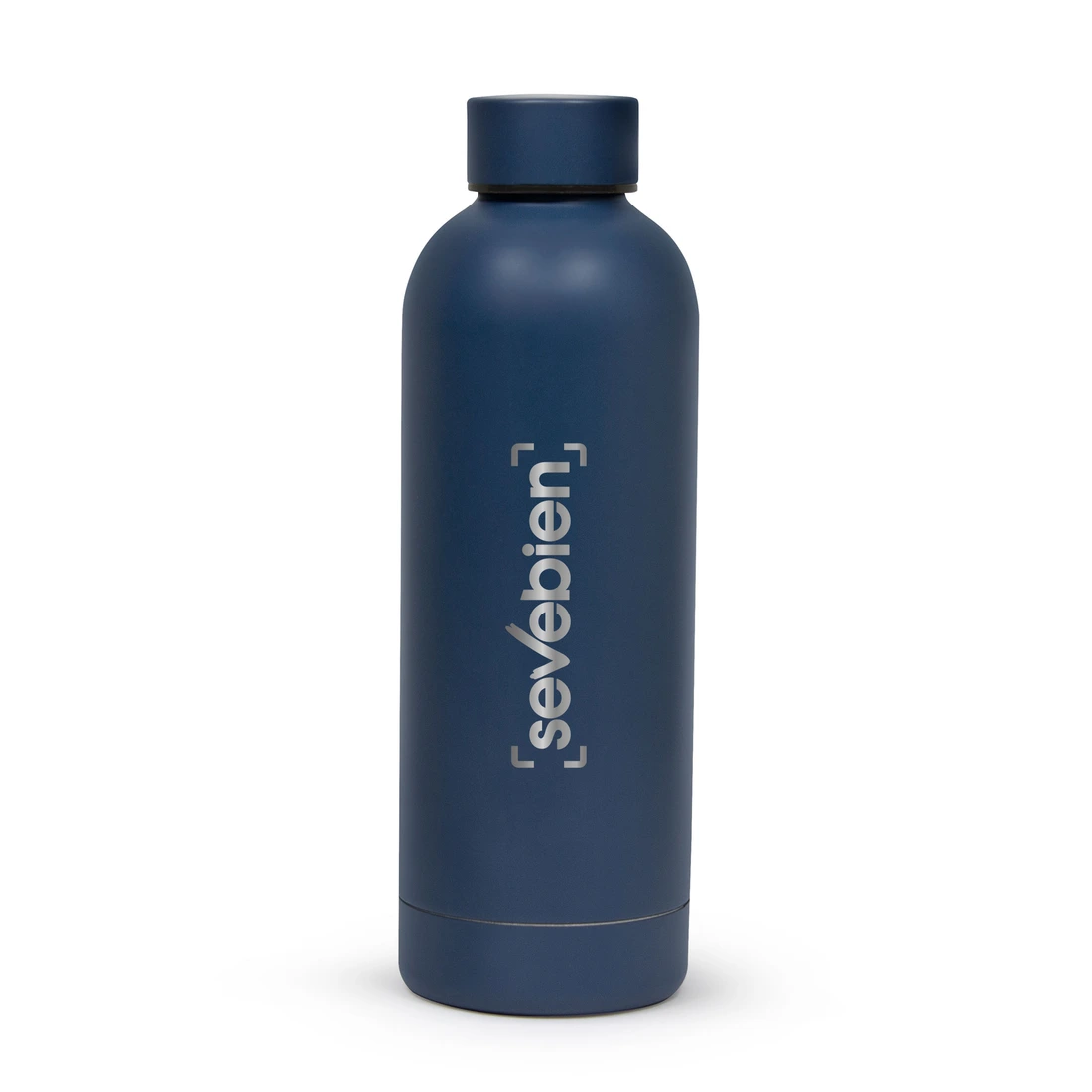 Ø 7.4 x 22 cm. Capacidad 500 ml. Acero inoxidable. Botella doble pared, sellada al vacío. Interior en acero 304 y exterior en acero 201. Mantiene hasta 12 hs la temperatura de las bebidas calientes y 24 hs de las bebidas frías. Presentación en caja de regalo.