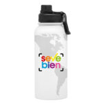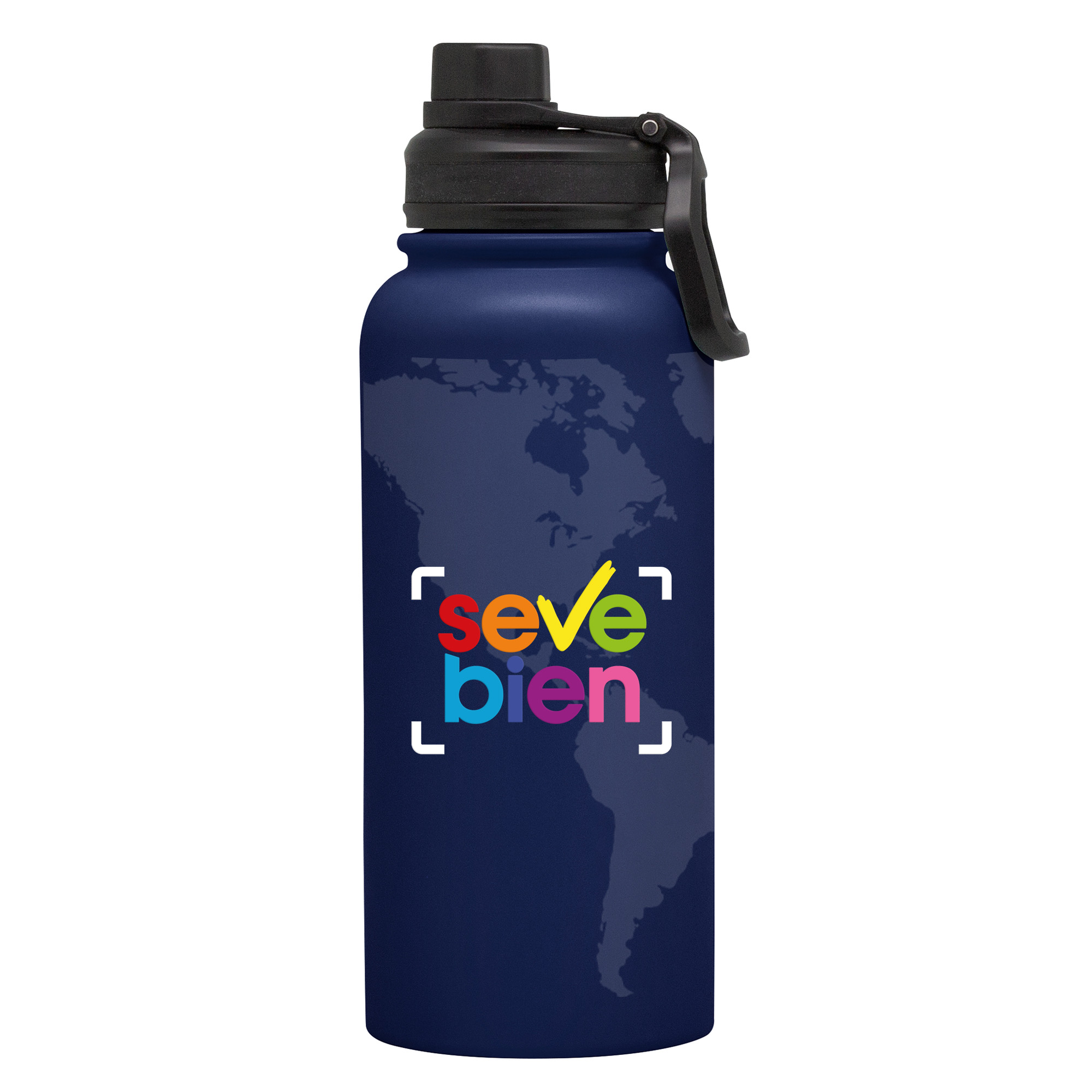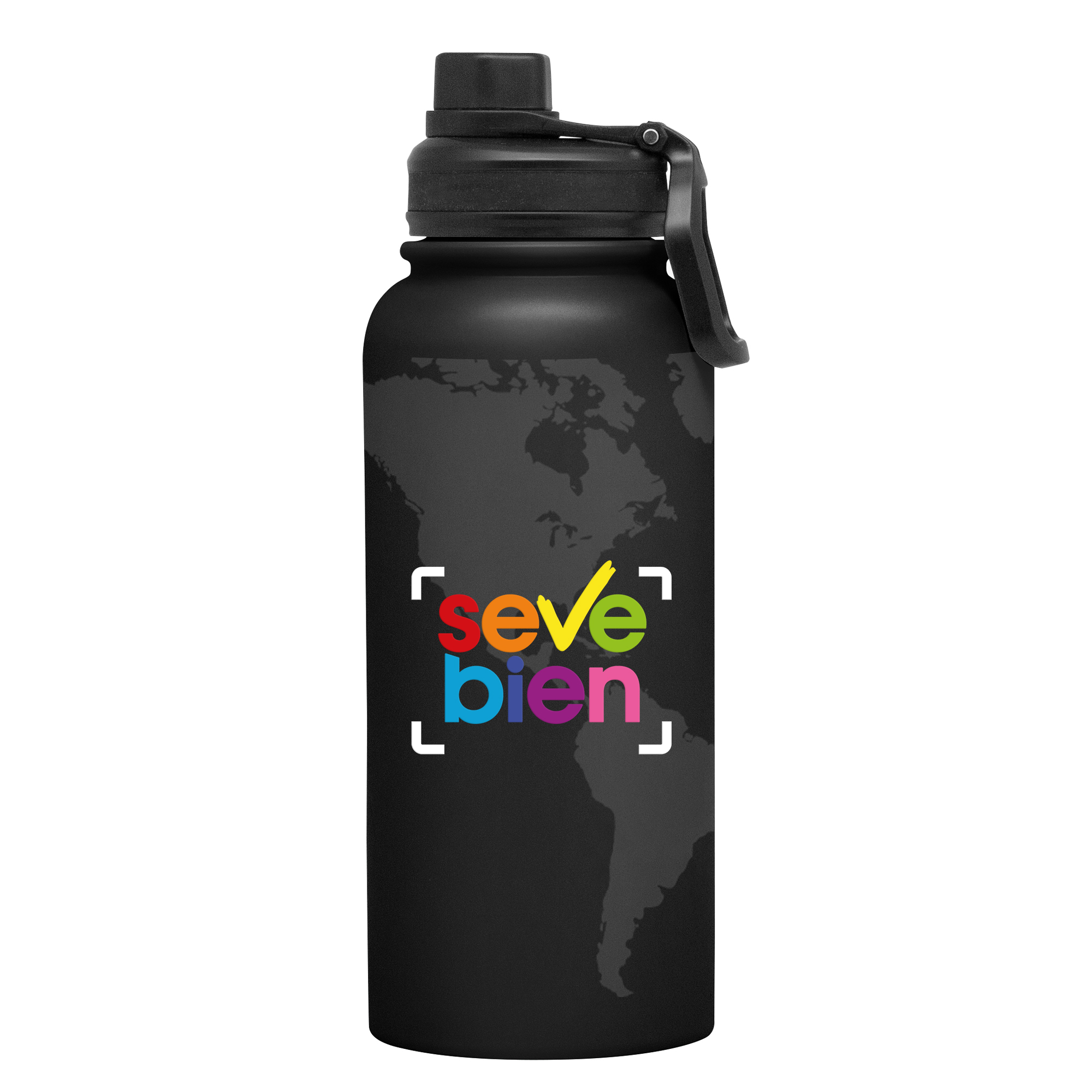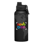 Ø 9 x 26 cm. Capacidad 1000 ml. Acero inoxidable. Botella deportiva doble pared, sellada al vacío. Interior en acero 304, exterior en acero 201. Tapa con anillo de silicona, boquilla con cierre a rosca antiderrame y manija plástica para su agarre. Mantiene hasta 12 hs la temperatura de las bebidas calientes y 24 hs de las bebidas frías. Presentación en caja de regalo.