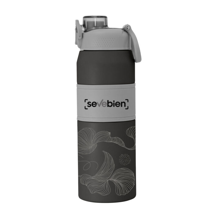 Hidratación a otro nivel.Botella deportiva con doble pared, sellada al vacío. Interior de acero 304 y exterior de acero 201. Pintura powder coat (pintura más duradera y resistente a la corrosión y el paso del tiempo). Tapa plástica a rosca en color gris con anillo de silicona y manija plástica para su agarre, combinada con tapa rebatible en colores translucidos a juego con el color de la botella. Boquilla con sorbete incluido. Grip de silicona color gris para mejor agarre. Mantiene alrededor de 8 hs la temperatura de las bebidas calientes y frías. Medidas: Ø 8 cm x 25 cm.