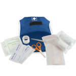 Botiquín de Emergencia modelo «Redcross», en tela Polyester 600D. Incluye 17 accesorios.