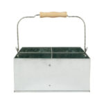 Canasto con 4 compartimentos interiores, fabricado en Acero Galvanizado de 0.35mm de espesor. Con asa metálica y mango de madera de pino. No incluye tapa. Ideal para poner velas o guardar accesorios metálicos, plásticos o de madera. Botellas chicas y vasos de vidrio, latas de bebida o cerveza.