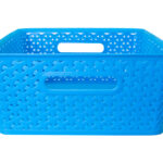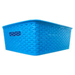 Canasto plástico organizador de 36.5 x 30 x 13.5 cm con tapa plástica. Diseño entrelazado tipo ratán. Capacidad 15 lt.