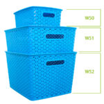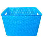 Canasto plástico organizador de 36.5 x 30 x 22 cm con tapa plástica. Diseño entrelazado tipo ratán. Capacidad 24 lt.