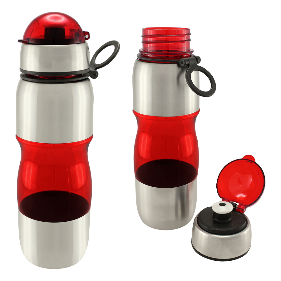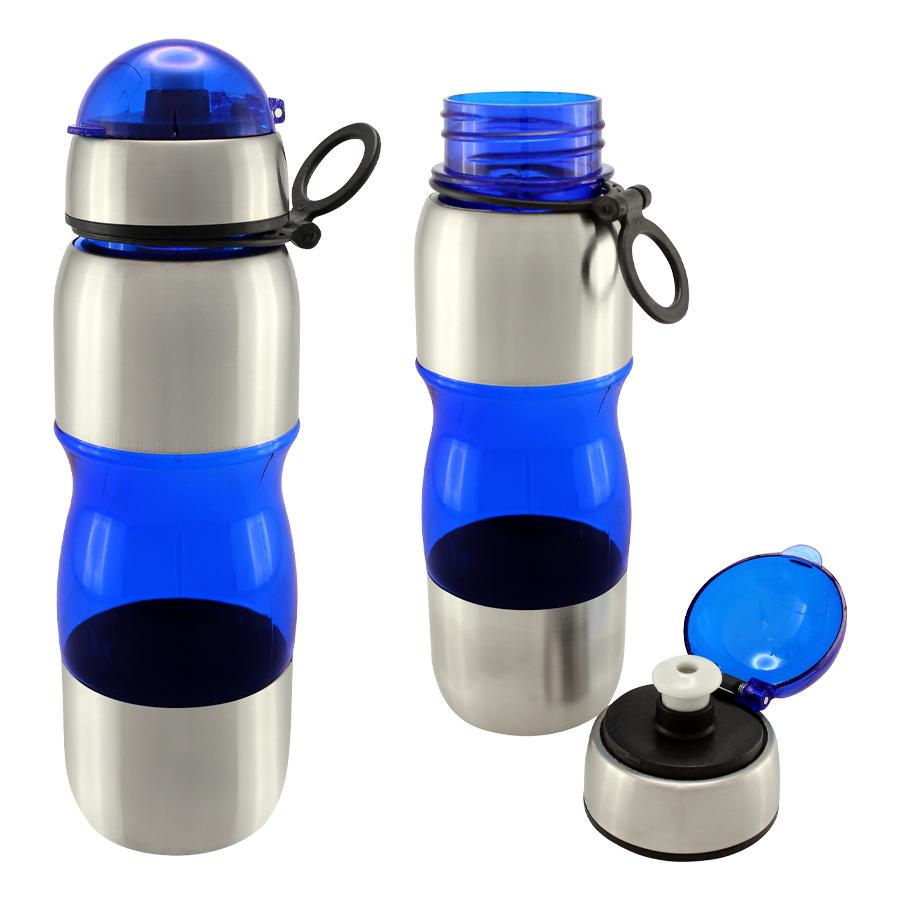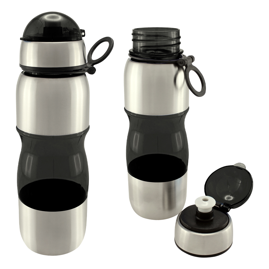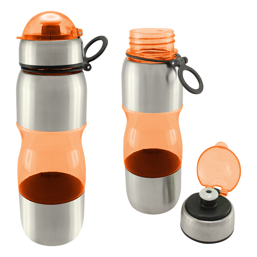 Botella deportiva modelo «Trend», de Acero Inoxidable con plástico rígido traslúcido. Para líquidos fríos (no térmico).