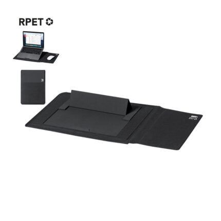 Descubre la elegancia y funcionalidad de la Carpeta Sorgax, un complemento esencial para profesionales y colaboradores. Este artículo de alta calidad no solo es práctico, sino que también promueve la sostenibilidad ambiental gracias a su fabricación en poliéster RPET, elaborado a partir de plástico reciclado. Su diseño sofisticado en color melange con detalles en negro y su sistema de cierre metálico con cinta elástica hacen de la Carpeta Sorgax el regalo corporativo perfecto para cualquier ocasión.