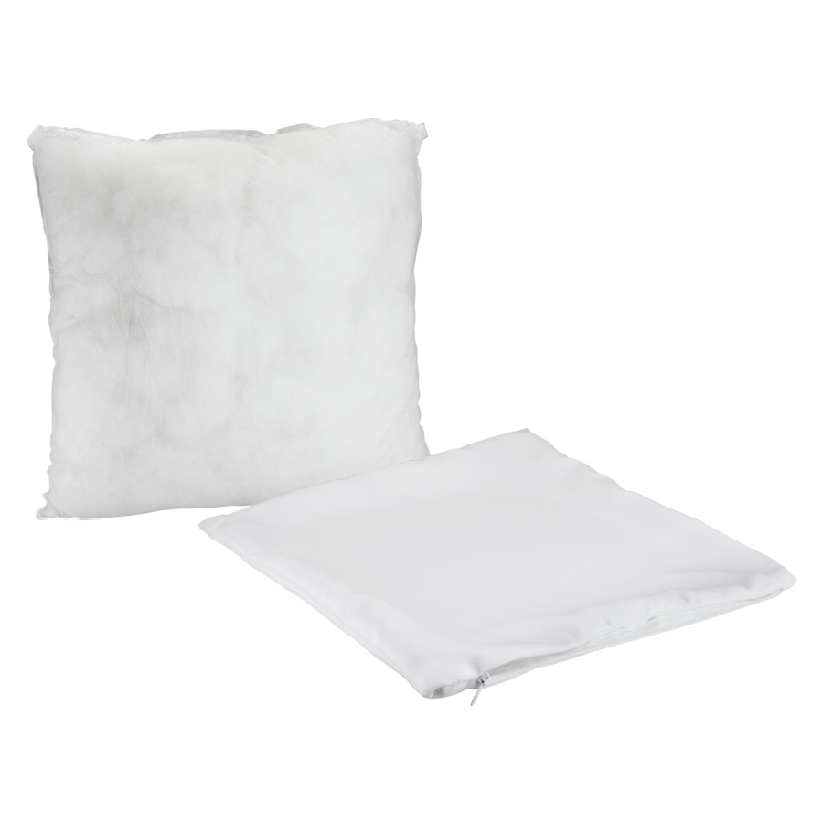 Cojín cuadrado de 38 x 38 cm. con funda desmontable (cierre) de poliéster blanco de 39 x 39 cm. para Sublimación. Presentación en bolsa de polipropileno.