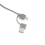 Connect Multicargador 4 en 1, con cuerpo rectangular de madera de bamboo y llavero metálico con mosquetón. incluye 3 cables de plástico circular engomado TPE de color gris, uno de 1m de largo, los otros 2 de 10cm c/u, con conector USB tipo (Micro-USB / Lightning / Type C) y conector de carga (USB / Type C). Presentación en bolsa 100% compostable + caja de regalo en cartón color natural.
