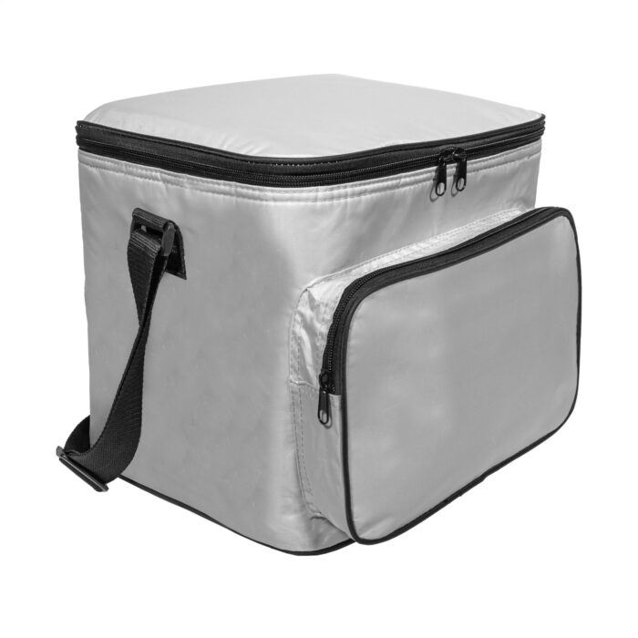 28 x 25 x 25 cm.. Capacidad 17,5 litros. Poliéster 420D. Interior recubierto de aluminio. Exterior con bolsillo y cierre que permite guardar pequeños objetos. Tira con regulador de tamaño para poderla transportar cómodamente.