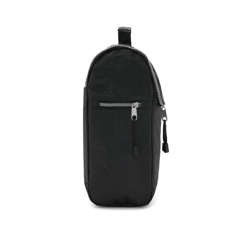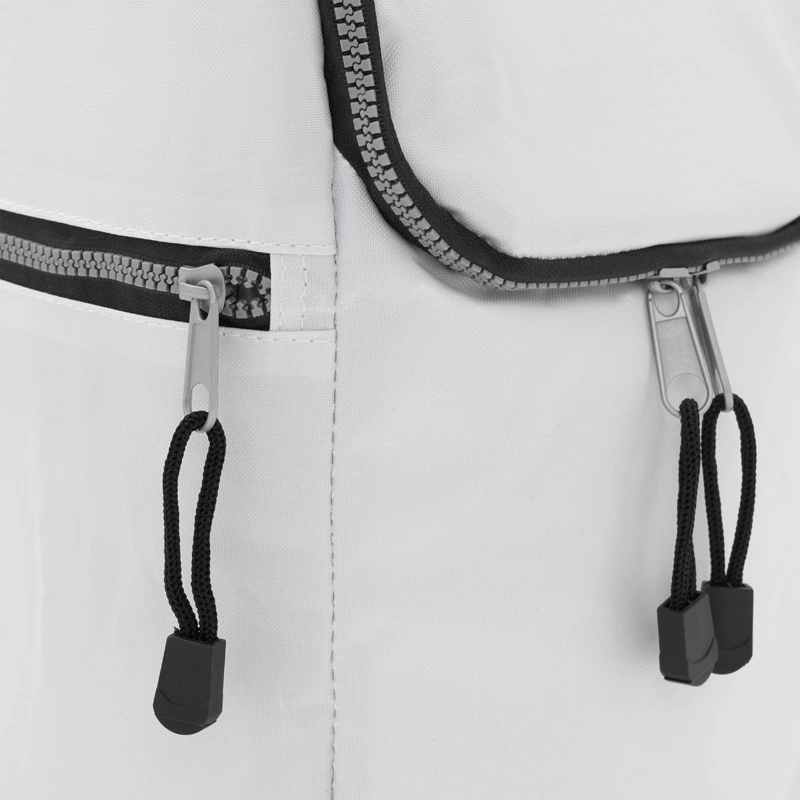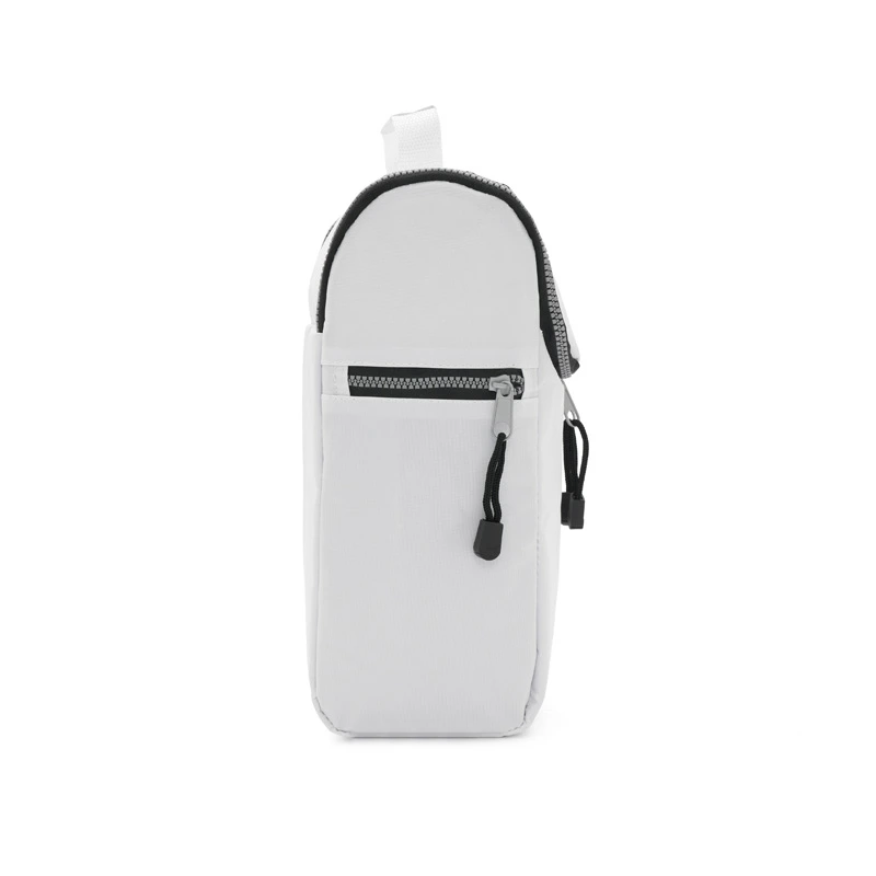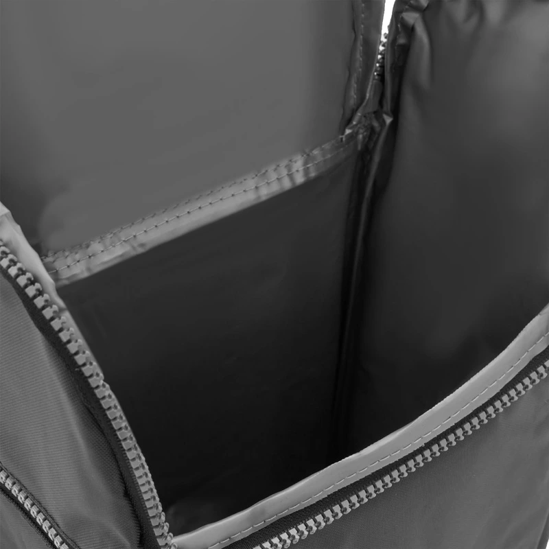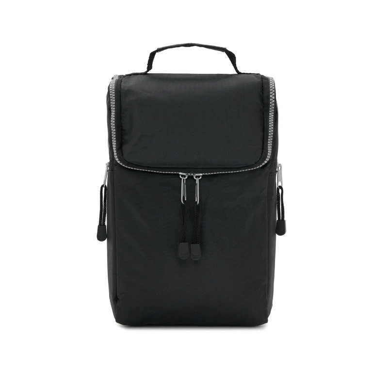 Cooler confeccionado en tela Nylon 600D, interior térmico forrado en PVC gris. Bolsillos laterales. Apto para llevar botellas, termos y otros.