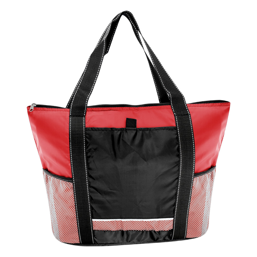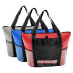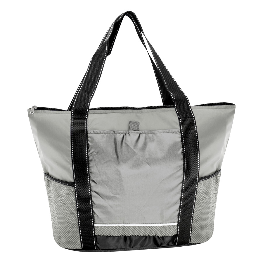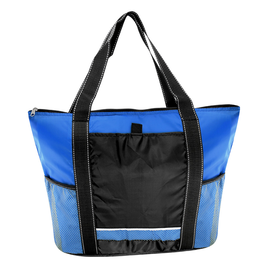 Cooler gigante modelo «Artic». Tela exterior Polyester 210D/PU. Tela interior plateada aislante 15C PEVA + relleno 6mm esponja PE. Cierre cremallera superior. Incluye bolsillo delantero para bordar + bolsillos laterales tela malla.