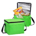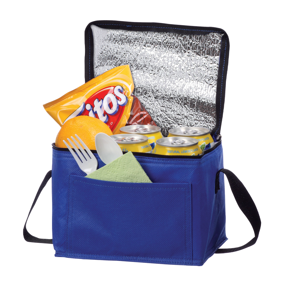 Cooler-Lonchera con bolsillo delantero, en tela no tejida (TNT) de 80g/m2. Interior en tela PVC metalizado aislante.