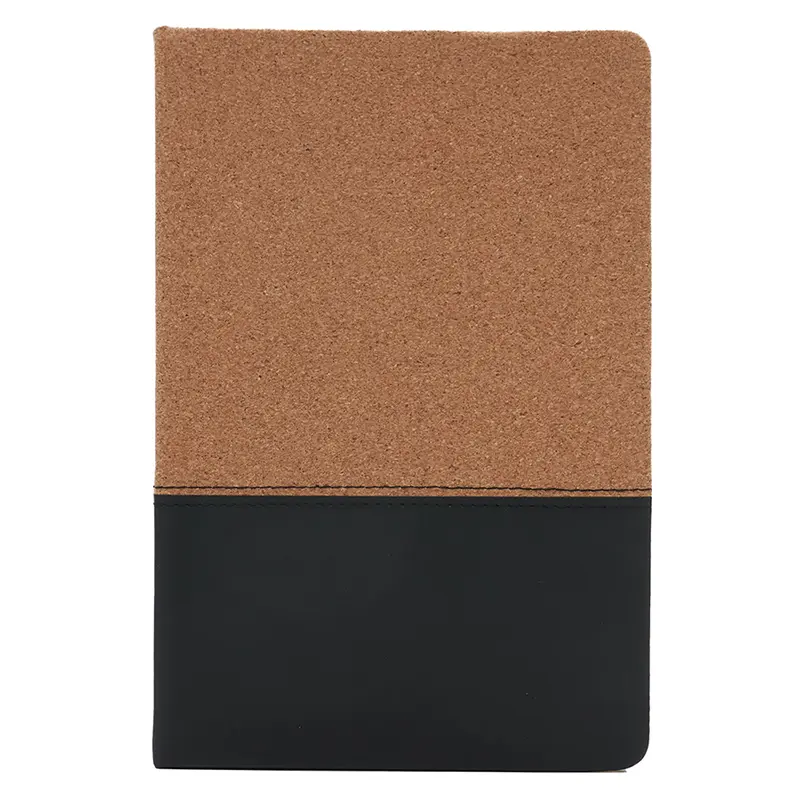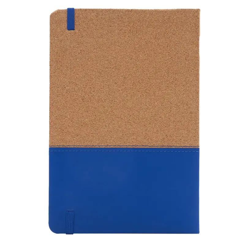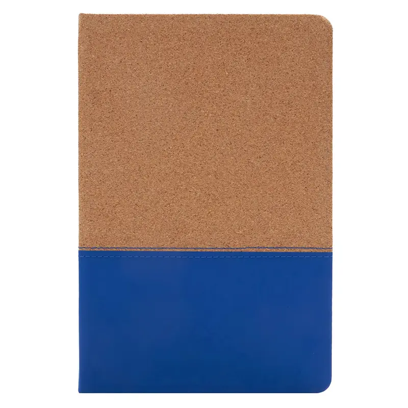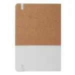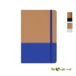 Cuaderno con tapa de corcho y PU. Cinta marca página y elástico de cierre. 80 hojas rayadas. Medidas: 14,5 x 21 cm. ReUseMe.