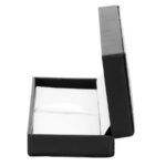Deluxe estuche rectangular Porta-Bolígrafo gerencial modelo «EMINENT», fabricado en cartón rígido forrado en eco-cuero (PU) color negro, contorno costurado con hilo blanco. Interior con doble base acolchada en tela afelpada blanca y cinta sujeta-bolígrafo de poliéster color blanco. Cierre magnético. Presentación en funda protectora de cartulina negra.