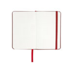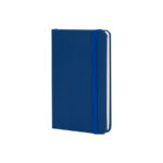 Deluxe libreta tamaño A6, con tapas duras de Eco-Cuero PU reciclado, engomado color mate, con 80 finas hojas color crema FSC IVORY PAPER de 80g/m2 con punteado «mental». Contiene elástico para cierre y banda separador de hojas al tono.