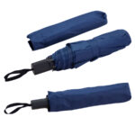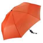 Deluxe Paraguas corto con 8 cascos de tela 190T PONGEE. Cuerpo telescópico de 3 secciones y varas reforzadas de Fibra de Vidrio color negro, sistema de apertura manual. Mango recto de EVA negro con cinta negra para colgar. Incluye funda al tono de 190T PONGEE.