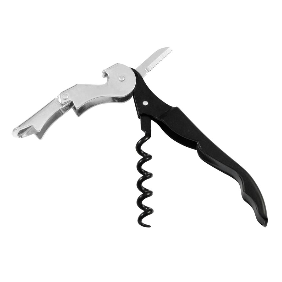 Descorchador profesional «Sommelier» de 2 tiempos de Acero Inoxidable con cubierta y tirabuzón de teflón. Presentación en caja de cartón plateada.
