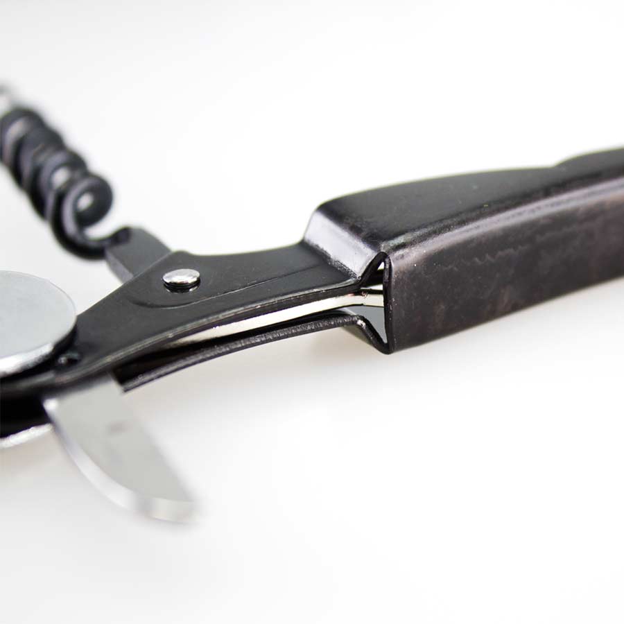 Descorchador profesional «Sommelier» de 2 tiempos de Acero Inoxidable con cubierta y tirabuzón de teflón. Presentación en caja de cartón plateada.