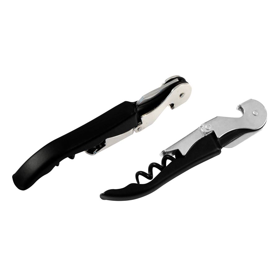 Descorchador profesional «Sommelier» de 2 tiempos de Acero Inoxidable con cubierta y tirabuzón de teflón. Presentación en caja de cartón plateada.
