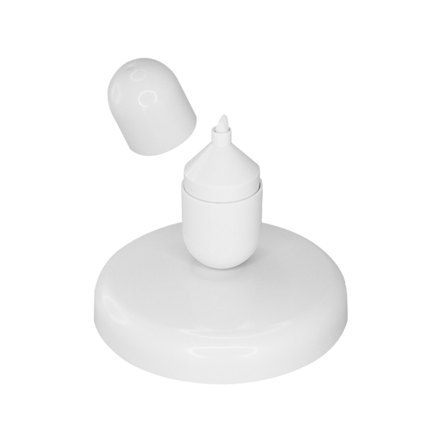 Destacador amarillo «Cápsula» blanca, sobre base plástica blanca. Cuenta con sistema imantado que sostiene la cápsula de pie sobre la base, estabilizándola como «mono porfiado». Amplia área de impresión tanto en la cápsula como en la base. Presentación en caja de regalo blanca. Importante: presionar la punta sobre papel por 3 segundos para que la tinta amarilla baje.