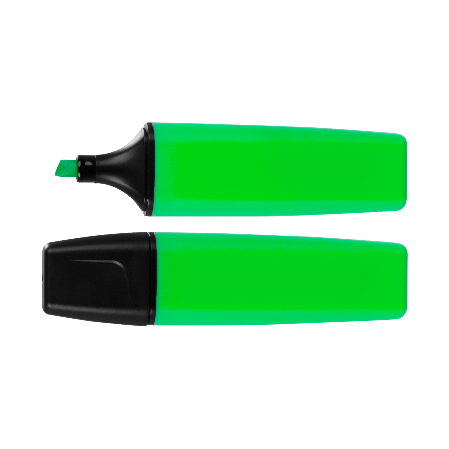 Destacador – Resaltador «HIGHLIGHTER» punta cincel 5mm, con cuerpo plástico plano de color sólido y tapa plástica negra, con amplia superficie para impresión de logo y mayor cantidad de tinta.