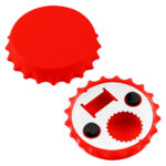 Destapador y Abridor de tapas twist-off, con forma de tapa de botella. Imantado para refigerador.