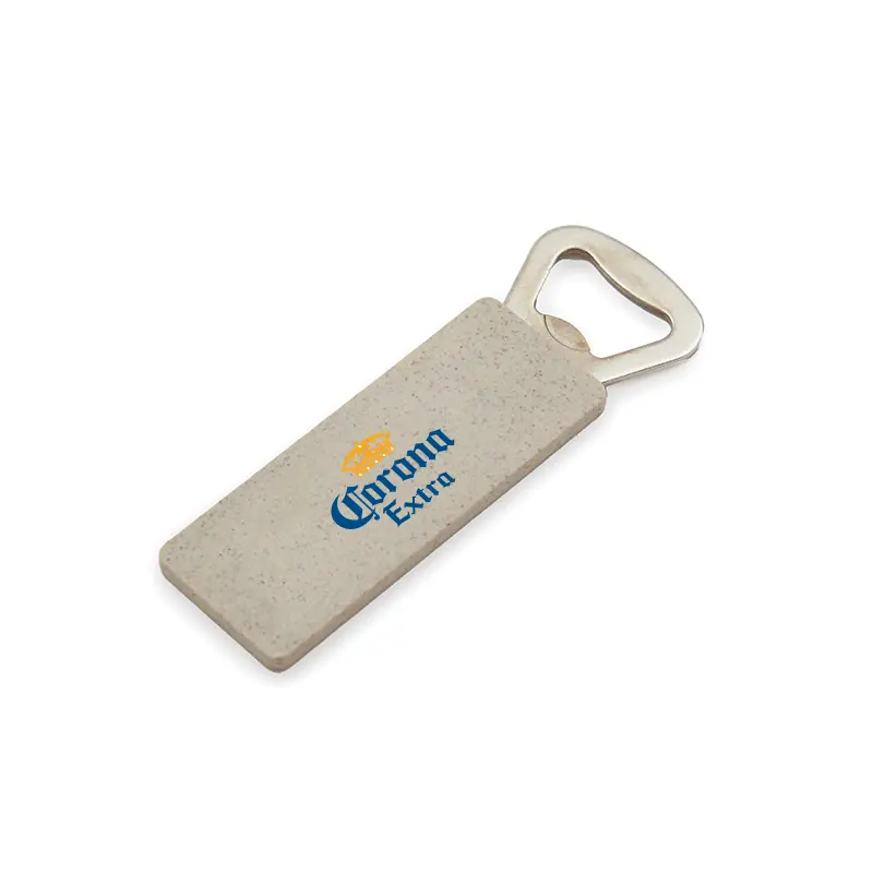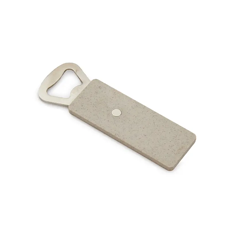 Destapador de botellas realizado en ABS y Hierro. Tiene un formato plano, para poder transportarlo con facilidad, y tambien cuenta con imán para colocarlo en la heladera. Dimensiones: 10,3 x 3,6 x 0,4 cm.