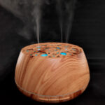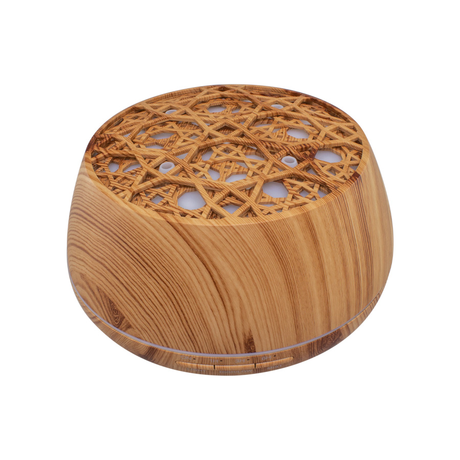 Difusor de Aroma con proyección de luz y parlantes. Contiene conexión Bluetooth para escuchar música desde el celular. También contiene APP para controlar colores e intensidad de aroma. Amplio contenido interno para líquido (hasta 300ml), diseño de proyección y colores variados de iluminación, atractivo formato en simil madera natural vetada. Un producto para disfrutar y relajarse, que no puede faltar en tu hogar u oficina.