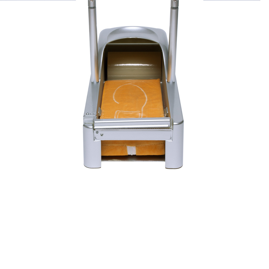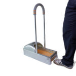 Dispensador de plástico ABS con estructura metálica, para Cubre-Calzado industrial. En cada pisada, entrega cobertor filom plástico PE adherente, ideal para mantener el calzado protegido de virus y bacterias en ambientes protegidos. Cuenta con soporte de apoyo manual de 65cm de altura. En el interior de debe instalar un rollo de film plástico PE protector (R18), que se adhiere a la planta del calzado en forma automática en cada pisada dentro del dispensador.