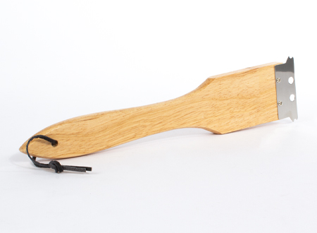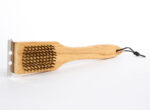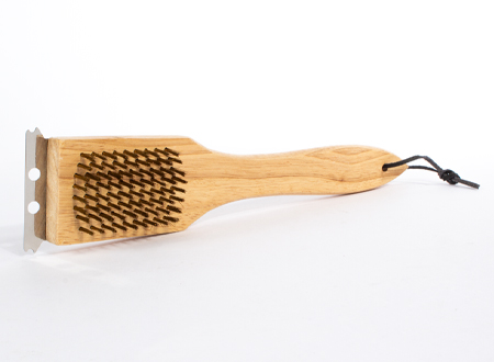 Escobilla de madera con cerdas de alambre de cobre de 1cm. de largo y placa de acero inoxidable, ideal para limpiar parrillas.