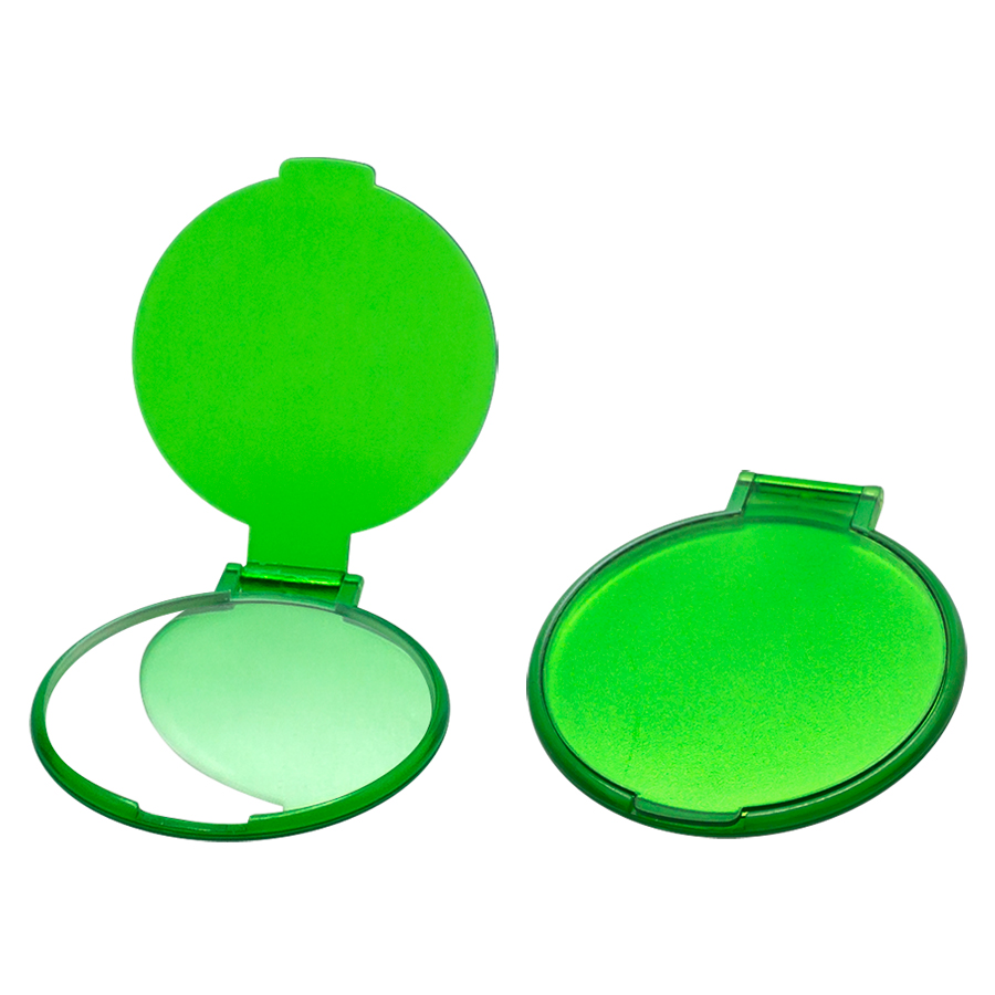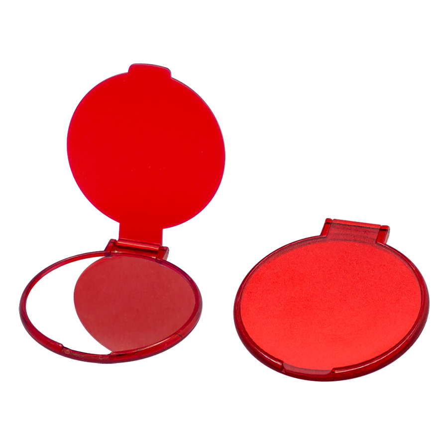 Espejo redondo de bolsillo, de plástico ABS, con tapa. Presentación individual en bolsita de polipropileno.