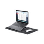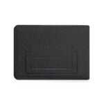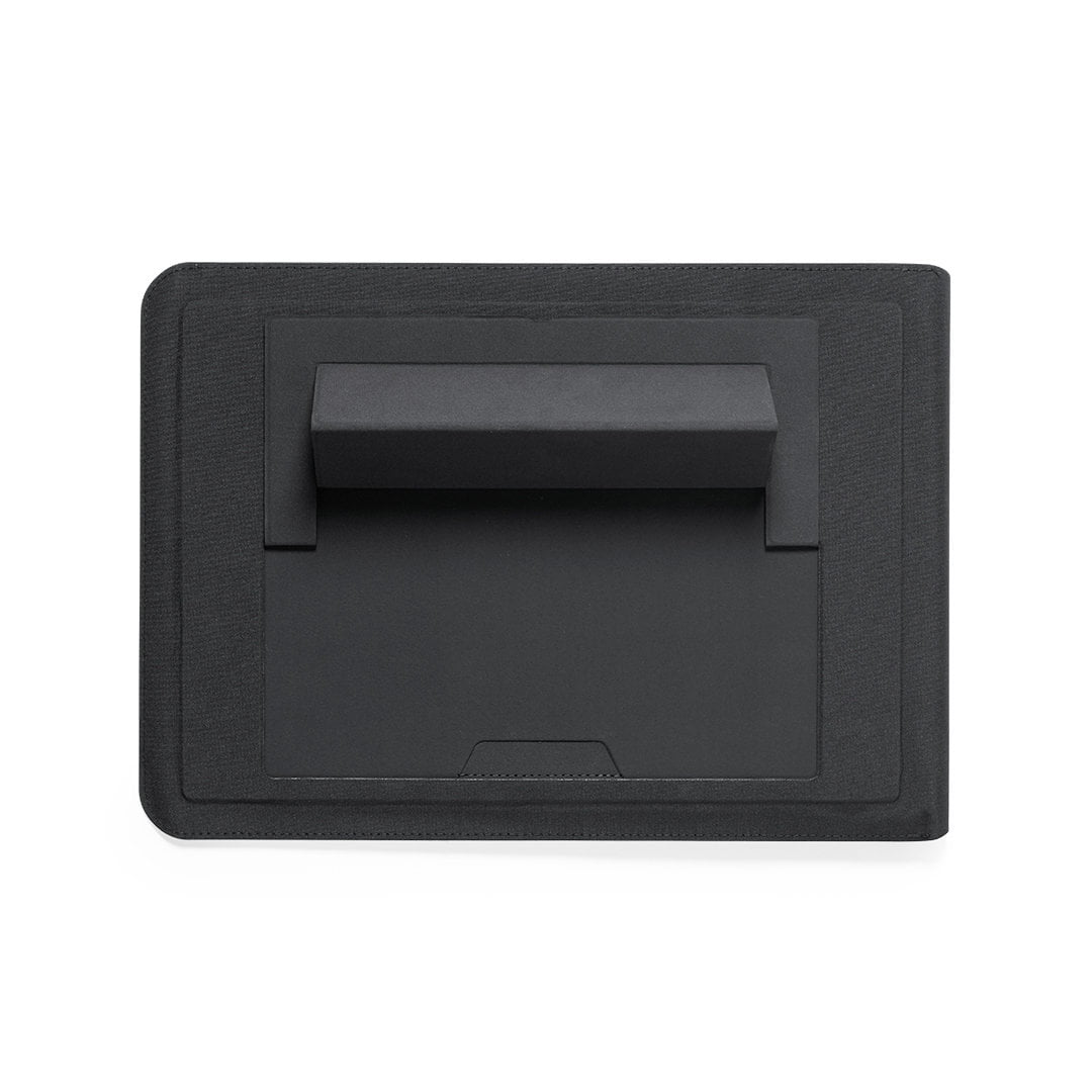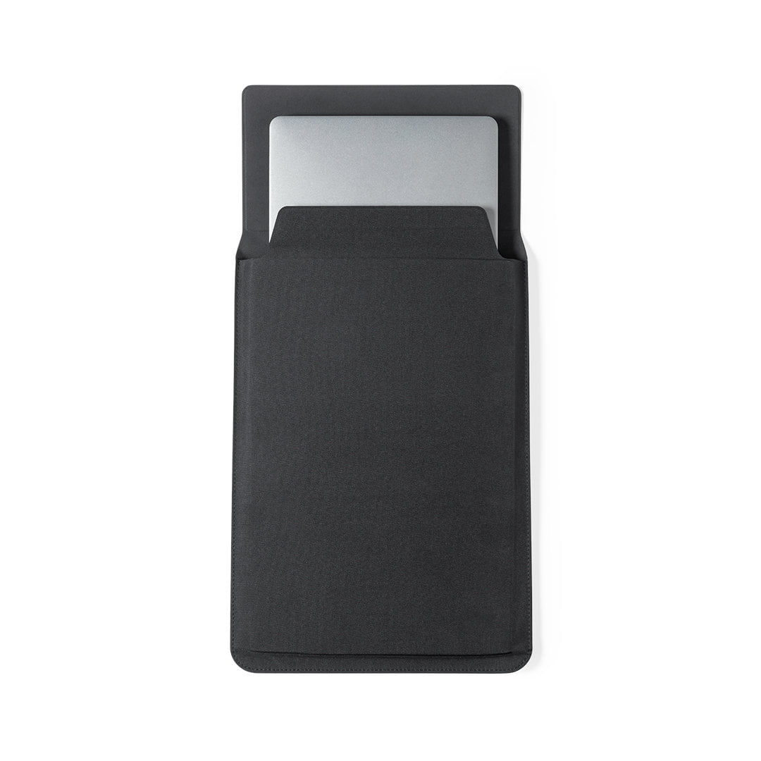Funda de ordenador fabricada en poliéster 600D RPET, elaborado a partir de plástico reciclado, para así fomentar la reutilización de residuos plásticos y ayudar a la sostenibilidad del planeta. Con cierre magnético y distintivo RPET. Interior desplegable con alfombrilla para ratón y soporte inclinado para ordenador. Presentado en caja individual de diseño.