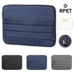 Funda para ordenador portátil de línea nature y acolchado total, para portátiles de hasta 15 pulgadas. Fabricada en resistente RPET 300D elaborado a partir de plástico reciclado, para así fomentar la reutilización de residuos plásticos y contribuir a la sostenibilidad del planeta. Bolsillo principal con cierre de cremallera y tirador metálico. Distintivo RPET en etiqueta. Acolchada