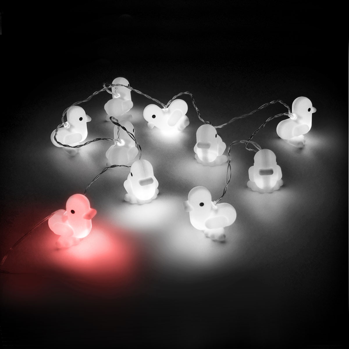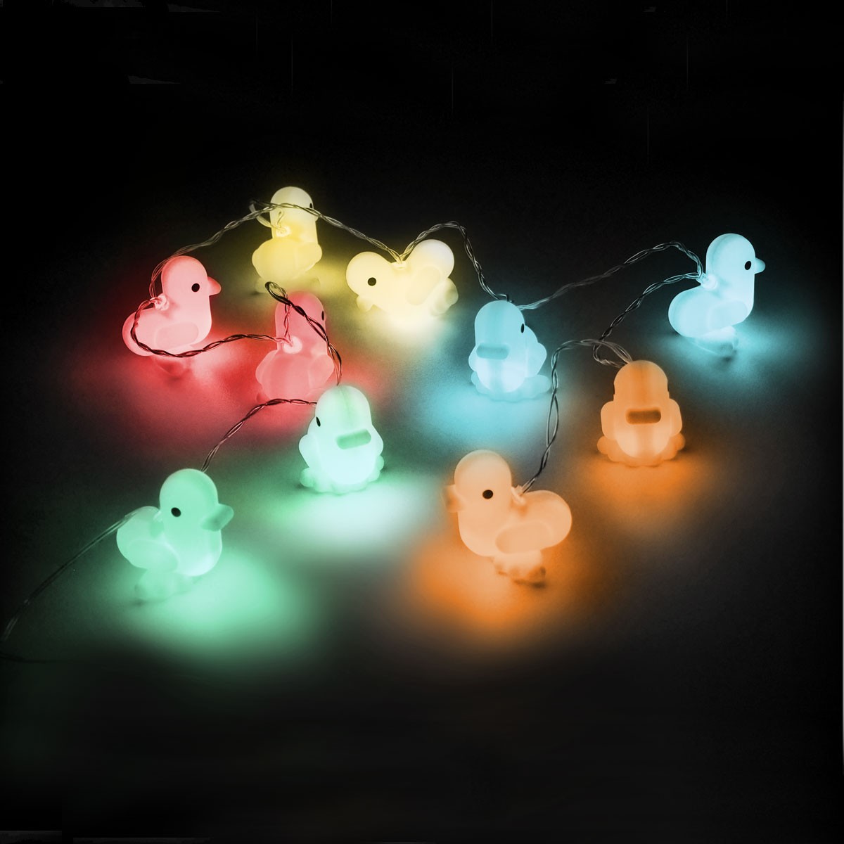 150 cm de largo. Silicona. Guirnalda luminosa. Luz LED. Funciona con 3 pilas AAA de 1.5V (no incluidas). Estos adorables y coloridos patitos iluminan de noche y alegran de día. Son simpáticos, tiernos y súper suaves. Ideales para decorar tus espacios. GATO es distribuidor exclusivo de este producto CANAR en Argentina. Presentación en caja de regalo.