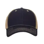 Jockey de 6 gajos con visera. El dorso del del gorro cuenta con diseño de tela de red de color kaki y ajuste con broche. Posee un sticker metalizado en la visera.