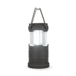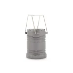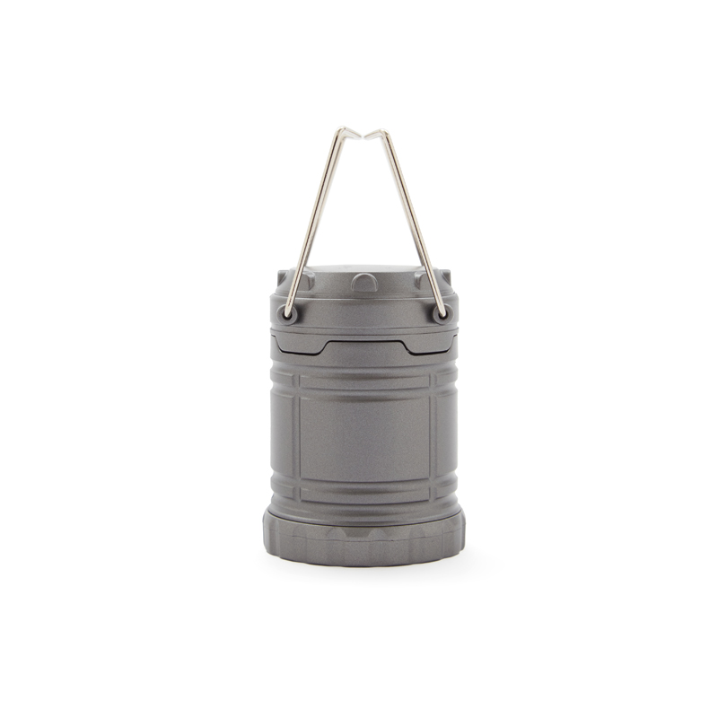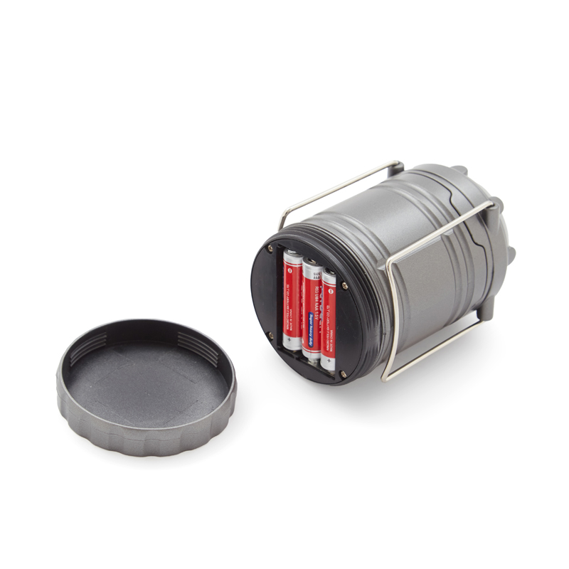 Linterna retráctil de tamaño compacto, fabricada en ABS de color gris. Funciona con 3 pilas AAA (no incluidas). Ideal para camping y aventuras al aire libre. El producto viene en una bolsa de PLA 100% compostable. Dimensiones: 6,85 x 9,5 cm.
