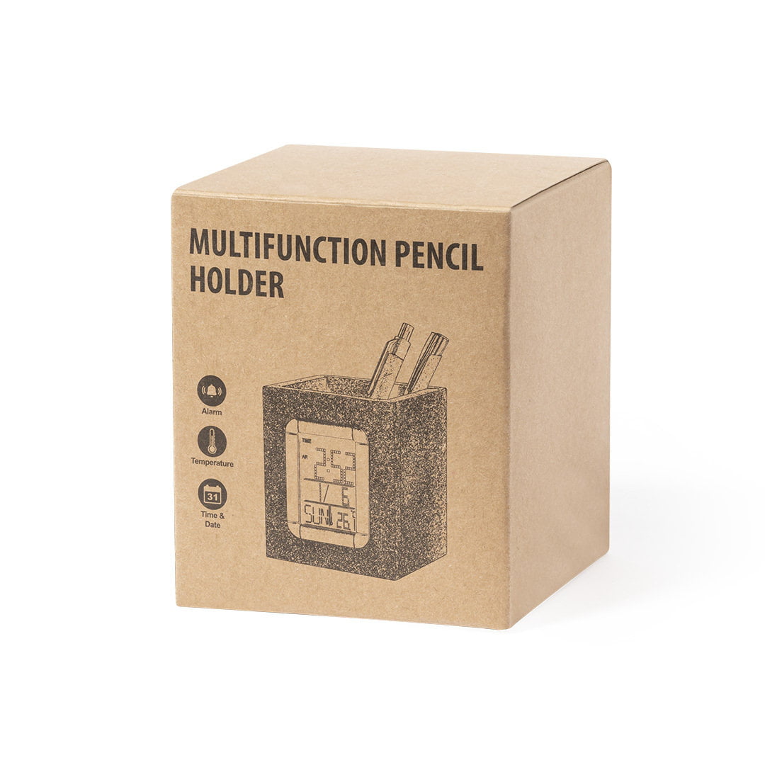 Explora la funcionalidad y el diseño sostenible con el Lapicero Multifunción Wicam. Este artículo de escritorio, elaborado con corcho natural, no solo es un accesorio elegante para tu espacio de trabajo, sino también una herramienta multifuncional que incluye un reloj, termómetro, calendario y alarma. Presentado en una atractiva caja de diseño eco, es el regalo corporativo perfecto para impresionar y expresar compromiso con el medio ambiente.